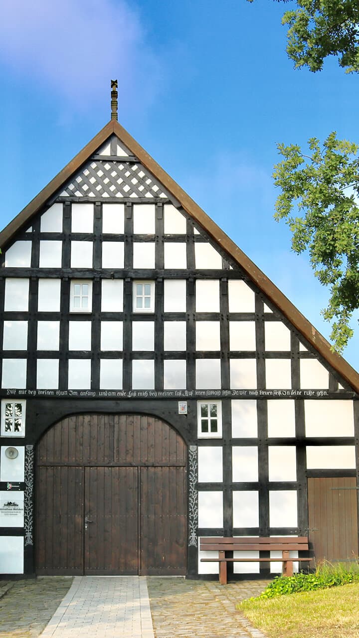 Das niederdeutsche Zweiständerhaus wurde Mitte des 19. Jh. in Fachwerkbauweise in Niedermehmen errichtet und fast 150 Jahre als Bauernhaus genutzt.
